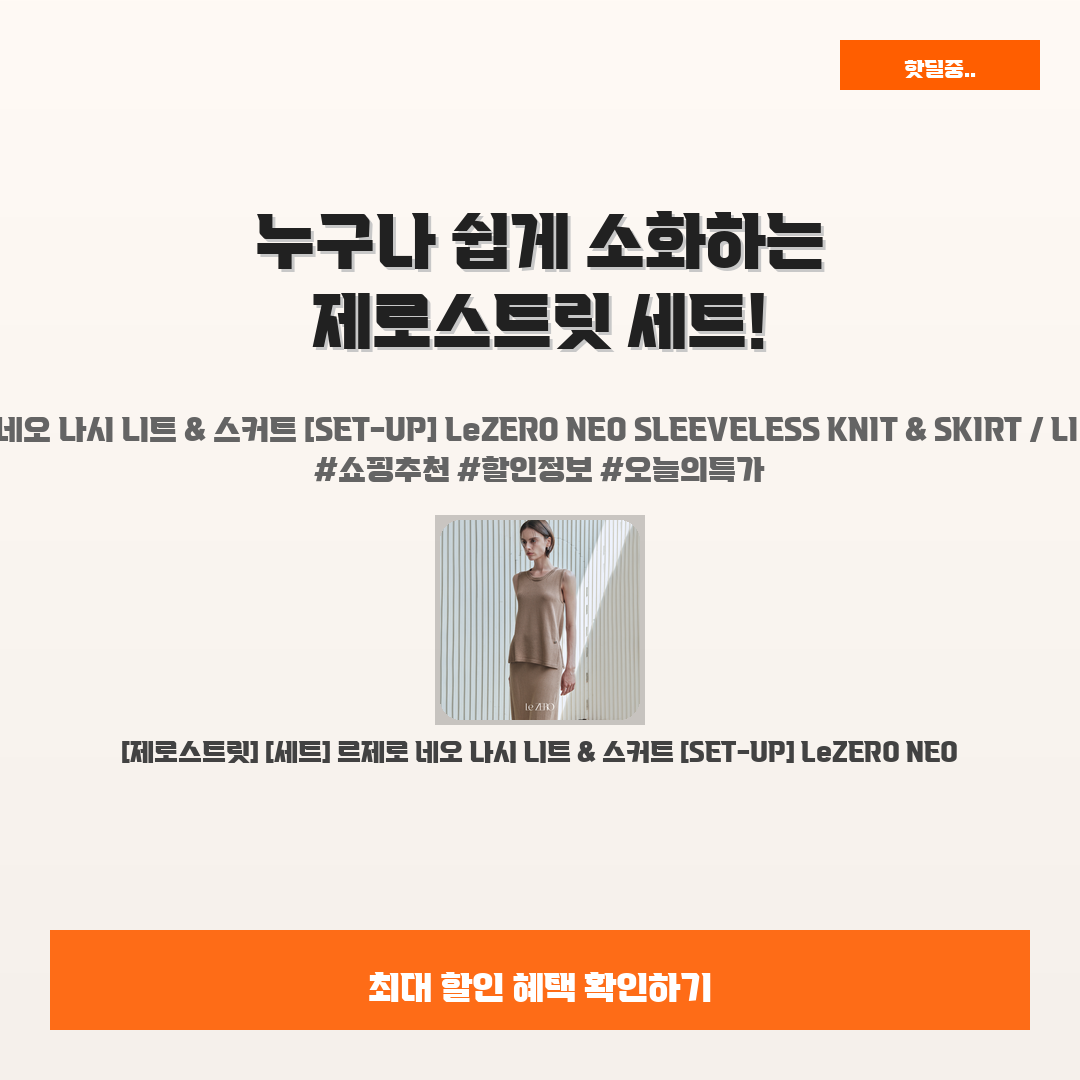 🛍️ 이 포스팅은 네이버 쇼핑 커넥트 활동의 일환으로,판매 발생 시 수수료를 제공받습니다.오늘 소개할 제품은 바로,제로스트릿 세트! 누구나 쉽게 소화할 수 있는 완벽한 스타일입니다.최근 유행을 반영한 르제로 네오 나시 니트와 스커트로 구성된 이 세트는일상에서부터 특별한 날까지 다양하게 활용할 수 있어서 부담 없이 입기 좋은 제품이에요.정말 옷장이 텅 비어서 고민이신가요? 제로스트릿 세트가 그 고민을 해결해줄 거예요!편안하면서도 세련된 스타일링을 쉽게 완성할 수 있으니, 정말 후회 없으실 거예요.게다가 지금 이 찬스에 43% 할인된 가격으로 만나보실 수 있으니,가성비를 중시하는 여러분께 강력 추천드려요! 놓치지 마세요!※ 이거 진짜 제가 직접 써보고 쓰는 리뷰예요 광고 아님!![제로스트릿] [세트] 르제..