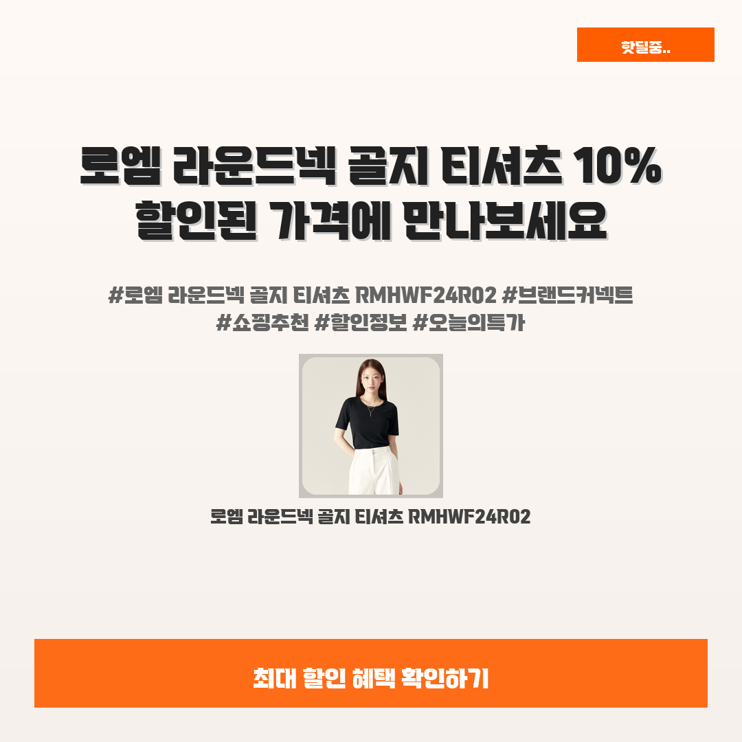🛍️ 이 포스팅은 네이버 쇼핑 커넥트 활동의 일환으로,판매 발생 시 수수료를 제공받습니다.오늘 소개할 제품은 단언컨데,,그야말로 완벽한, 갓벽한, 감동적인 제품이라구요요즘 편안하면서도 스타일리시한 옷을 찾는 분들 많으시죠? 로엠 라운드넥 골지 티셔츠 RMHWF24R02가 바로 그런 여러분의 고민을 해결해 줄 제품이에요!원래 가격이 29,900원이지만 지금 10% 할인된 26,910원에 만나볼 수 있는 기회 놓치지 마세요!이 티셔츠는 착용감이 뛰어나고, 어떤 스타일과도 잘 어울려서 정말 자주 손이 가게 되더라구요. 친구들이 물어본다면 “어디서 샀어?”라는 질문이 절로 나올 거예요!고민하지 마시고, 이 특별한 기회를 통해 여러분도 그 행복감을 느껴보세요.또, 가성비가 정말 뛰어나서 강력 추천드립니다!로엠 ..