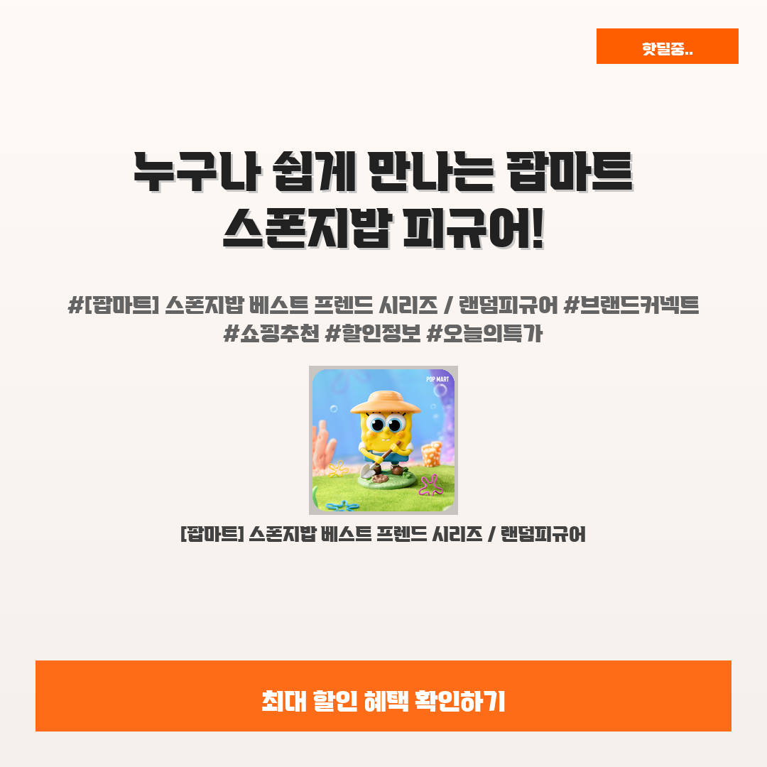 🛍️ 이 포스팅은 네이버 쇼핑 커넥트 활동의 일환으로,판매 발생 시 수수료를 제공받습니다.오늘 소개할 제품은 바로 팝마트!그 중에서도 스폰지밥 베스트 프렌드 시리즈입니다!아시죠? 요즘 피규어가 대세라는 거! 특히 랜덤피규어는 선물용으로 딱 좋답니다."[팝마트] 스폰지밥 베스트 프렌드 시리즈 / 랜덤피규어"는 그야말로 분위기를 한층 업 시켜줄 아이템이에요~친구들과의 기념일, 생일 또는 특별한 날에 예상치 못한 감동을 줄 수 있는 제품이랍니다. 저 같은 경우도 친구에게 선물했는데, 그 반응이 정말 놀라웠어요!여러분도 이 특별한 순간을 즐겨보셨으면 좋겠어요!게다가 가격도 저렴한 15,000원이니 부담 없이 구매할 수 있답니다.인기 있는 상품이니 만큼 후기도 정말 긍정적이에요! 망설이지 마시고, [팝마트] 스..