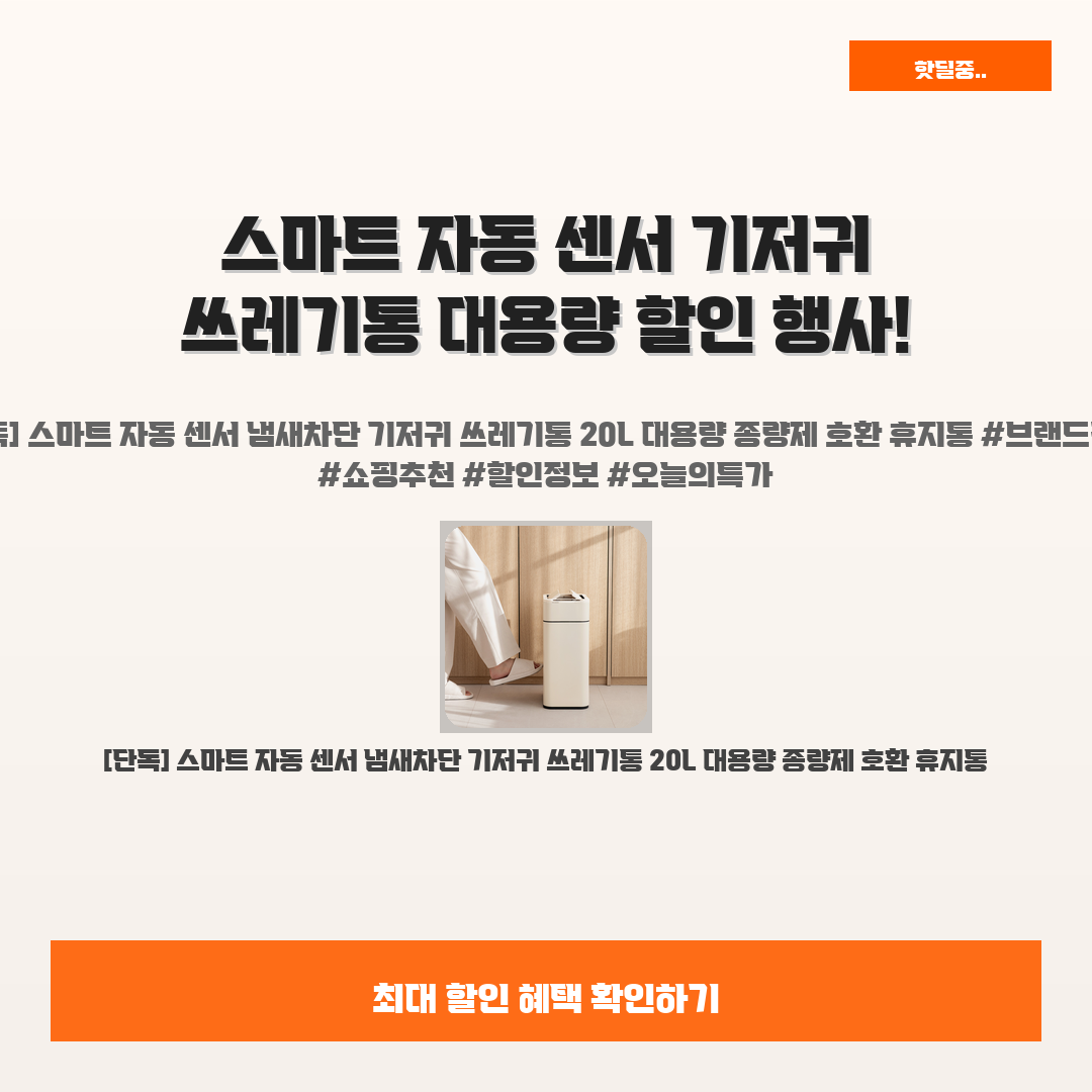 🛍️ 이 포스팅은 네이버 쇼핑 커넥트 활동의 일환으로,판매 발생 시 수수료를 제공받습니다.오늘 소개할 제품은 단언컨데,,그야말로 완벽한, 갓벽한, 감동적인 제품이라구요요즘 기저귀를 사용하시는 부모님들은 대부분 불쾌한 냄새와의 전쟁 중이실 텐데요,"[단독] 스마트 자동 센서 냄새차단 기저귀 쓰레기통 20L 대용량 종량제 호환 휴지통" 이제는 그 걱정을 덜어줄 수 있는 해결책이 생겼습니다!이 스마트 기저귀 쓰레기통 덕분에 언제 어디서나 쾌적함을 유지할 수 있게 되었어요. 사용자가 원하는 대로 열리고, 냄새가 차단되니 정말 편리하답니다! 가성비도 진짜 미쳤어요, 지금 할인된 가격으로 만나보실 수 있으니까 꼭 확인해 보세요!혁신이 필요한 당신의 육아에 이 기저귀 쓰레기통이 큰 도움이 될 것이라 확신해요. 한 ..