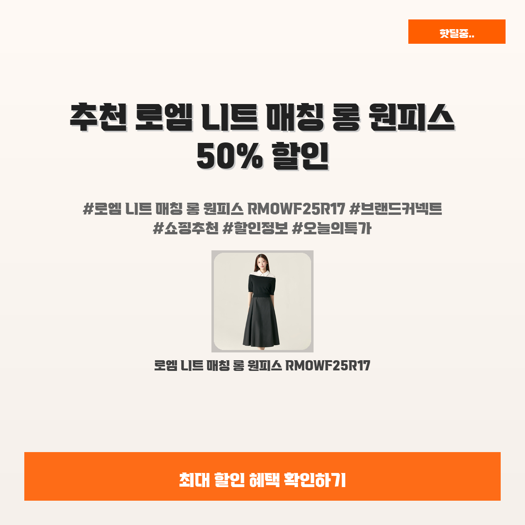 🛍️ 이 포스팅은 네이버 쇼핑 커넥트 활동의 일환으로,판매 발생 시 수수료를 제공받습니다.오늘 소개할 제품은 단연코,,그야말로 완벽한 선택인 로엠 니트 매칭 롱 원피스 RMOWF25R17입니다!요즘 어떤 원피스를 찾느라 고민하시는 분들 많으시죠? "로엠 니트 매칭 롱 원피스 RMOWF25R17"는 그 고민을 덜어주는 정말 매력적인 아이템이에요.세련된 디자인과 편안한 착용감이 매력적이어서, 어떤 자리에서도 완벽하게 어울려요!게다가 지금 50% 할인 중이라니, 이 기회를 놓칠 리가 없죠?실제로 착용해보면 행복감이 느껴지는 제품이랍니다!저도 이 원피스를 입고 나간 날, 주변 사람들의 시선을 한 몸에 받았던 기억이 있어요 모든 순간이 특별하게 변할 거예요.이 특별한 가성비 좋은 원피스, 고민하지 마시고 지금 ..